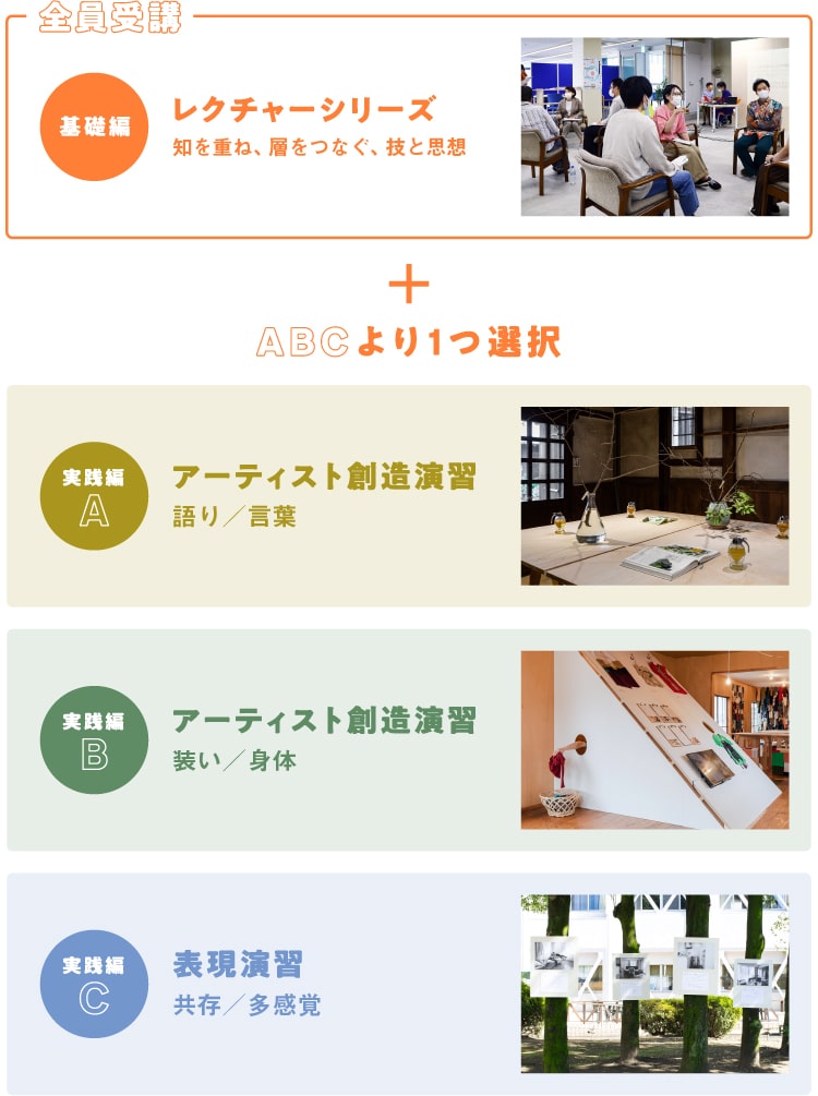 3年目となる2022年度は、「創造的な共有」をテーマとして探求を深めるプログラムを開講します。基礎編のレクチャーシリーズでは、多彩な講師陣とともに、時空を超えて共有するための技と思想を学び合います。実践編の3つのプログラムでは、それぞれプロジェクトチームを編成し、アートプロジェクトを企画・制作・実施するなかで、記録や記憶の継承、アーカイブについて考察し、創造的な共有のあり方を編みだすことを試みます。